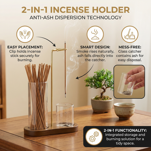 2-in-1 Incense Holder Set for Meditation and Relaxation with Glass Ash Catcher