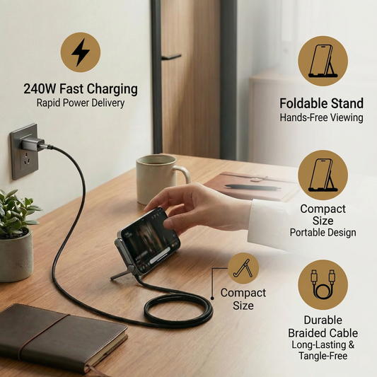 2-in-1 Foldable Fast Charging Cable & Phone Stand